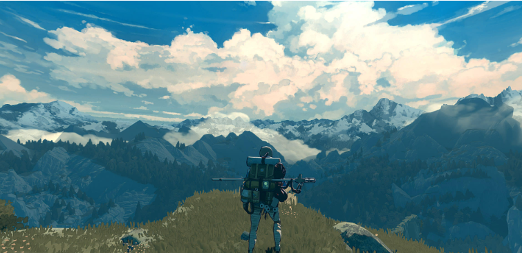 On ne va pas tergiverser : c’est très exactement tout ce que j’attendais, ni plus, ni moins. Le jeu a répondu à toutes les attentes que j’avais et a rempli sa promesse : me faire voyager, me faire vibrer et me faire vivre une aventure à nulle autre pareille. Pour ceux qui ont raté un bus, il s’agit d’un jeu d’escalade, ponctué de mécaniques de survie. On y incarne Aava, une alpiniste chevronnée qui se met au défi de gravir la plus haute et la plus difficile montagne du monde : Kami. Pieds nus, sac à dos et robots assureurs parés, l’aventure commence. Au programme, gestion des ressources, escalade de parois qui paraissent infranchissables, gestion du climat, anticipation et surtout découverte d’un monde absolument exceptionnel. Pour moi, Cairn est ce que Shadow of the Colossus est à sa manière de présenter son univers. Plein de mystères, de doutes. Kami n’est pas un endroit comme les autres et regorge de secrets à tout va et prend surtout la peine de vous laisser découvrir le lore, l’héritage, le passé de cet endroit à la fois atypique et familier. Bien évidemment, le tout est ponctué par la direction artistique de Mathieu Bablet (qui a d’ailleurs produit une carte pour le coffret Marvel Anthology soit dit en passant) qui via un cel-shading de toute beauté, parvient à rendre chaque lieu, chaque panorama et chaque moment unique. Du début à la fin de l’ascension, on n’a jamais l’impression de redondance, de revenir sur ses pas. Chaque obstacle franchi nous récompense d’un panorama exceptionnel ou d’une séquence merveilleuse, toujours ponctués par une bande-son au même niveau, composée notamment avec The Toxic Avenger. Cairn est un savant mélange de gestion du sound-design, d’ambiance visuelle et tous les choix artistiques (audio ou visuels) sont parfaits. C’est un sans-faute et comme je le disais, j’ai vraiment reconnu du Shadow of the Colossus dans cette mise en scène, dans cet univers et dans cette progression. Et c’est mon jeu préféré, just saying…