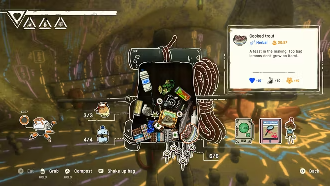 La principale crainte que j’avais suite à ma preview du jeu, c’était que le jeu tombe dans le piège du « trop ». Pêche, cueillette, cuisine, documents à trouver… Tout ça me faisait peur mais au final, à la manière de tout ce qu’il entreprend, Cairn le maîtrise à la perfection. Toutes les composantes ne sont jamais de trop et le jeu ne tombe jamais dans la surenchère d’activités ou de contenus qui ne servent à rien. Aava doit se nourrir : c’est tout. Alors oui, vous trouverez bien des pseudos objectifs secondaires avec des récompenses qui vous aideront dans votre ascension mais la majorité de ces petits « à-côté » se font via l’exploration, récompensent votre curiosité et ne deviennent jamais un fardeau que l’on s’impose. L’essentiel, c’est la montagne.